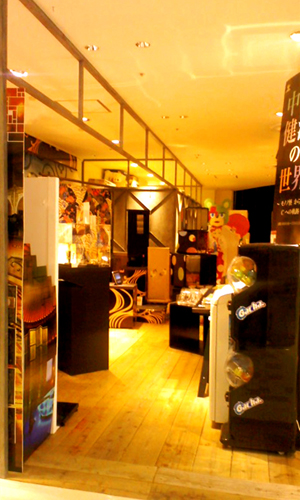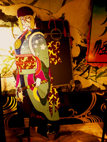 が来店され、写真の右の「モノノ怪」パネルに