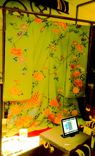 展示の終わりの頃は、このような萌黄色のお着物でした。